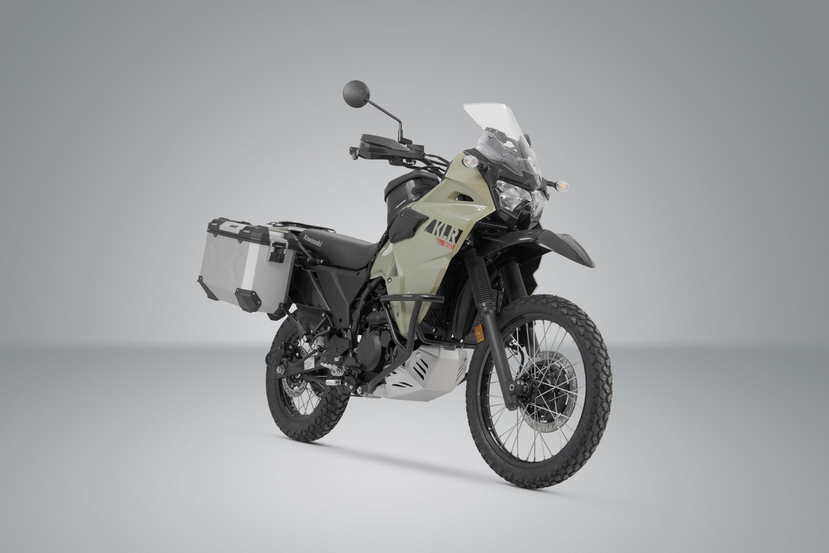 SW-MOTECH has built the silver aluminum case system suitable for the Kawasaki KLR 650 (21-) using extremely durable, bike-specific PRO side carriers.