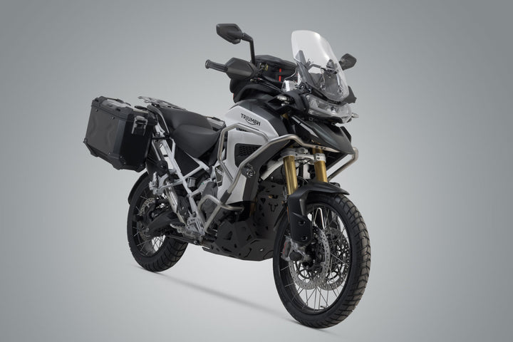 SW-MOTECH has manufactured this black aluminum case system suitable for the Triumph Tiger 1200 Rally / GT Explorer using extremely durable, bike-specific PRO side carriers.