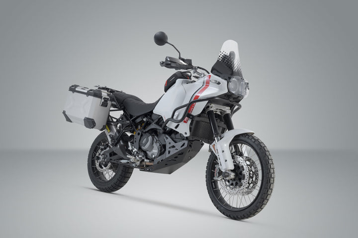 SW-MOTECH has built the silver aluminum case system suitable for the Ducati DesertX using extremely durable, bike-specific PRO side carriers.