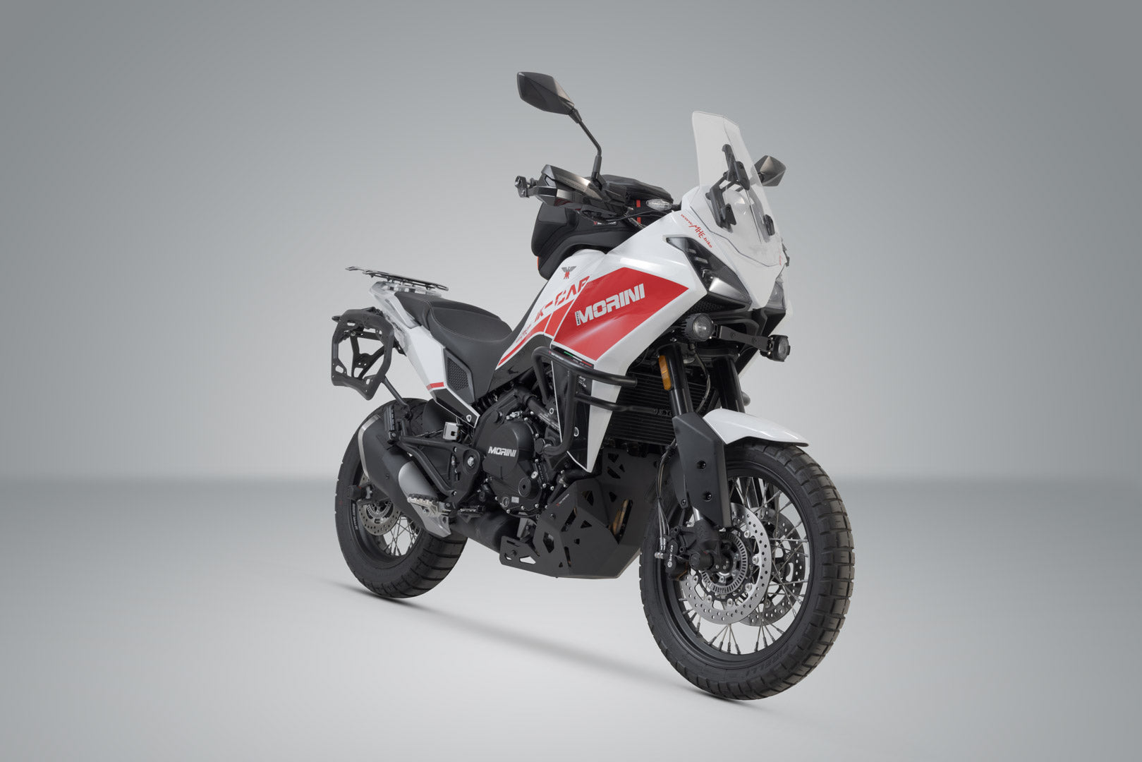 With this complete system you get all the components you need to start your next motorcycle tour with the Moto Morini X-Cape 650 and the DUSC: two robust DUSC hard cases, two removable PRO side carriers, an attachment kit and a simultaneously locking lock set. The bike-specific carriers and size of the cases are designed to perfectly match the shape of the tail as well as the motorcycle's exhaust system.