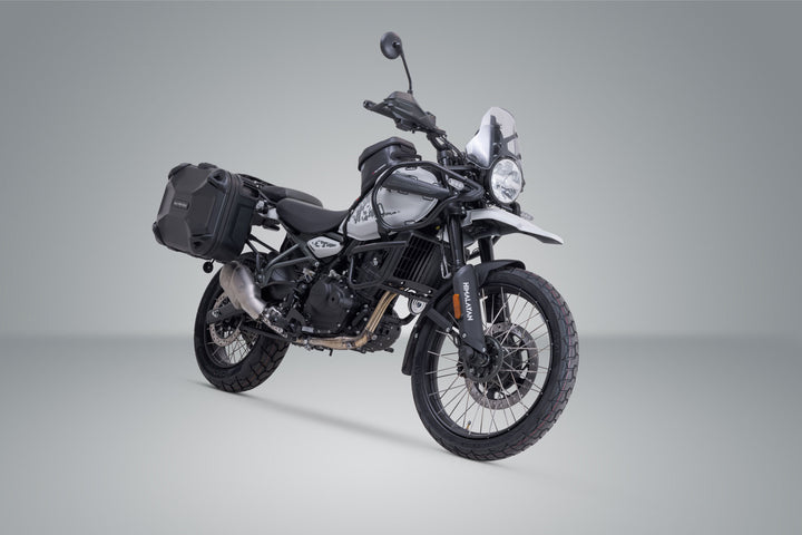 With this complete system featuring DUSC, you get all the components you need to get your bike ready for your next motorcycle tour with the Royal Enfield Himalayan 450: two rugged DUSC hard cases, two removable PRO side carriers, mounting kit and one lock set operated with the same key. The bike-specific carriers and size of the cases are designed to perfectly match the shape of the tail as well as the motorcycle's exhaust system.