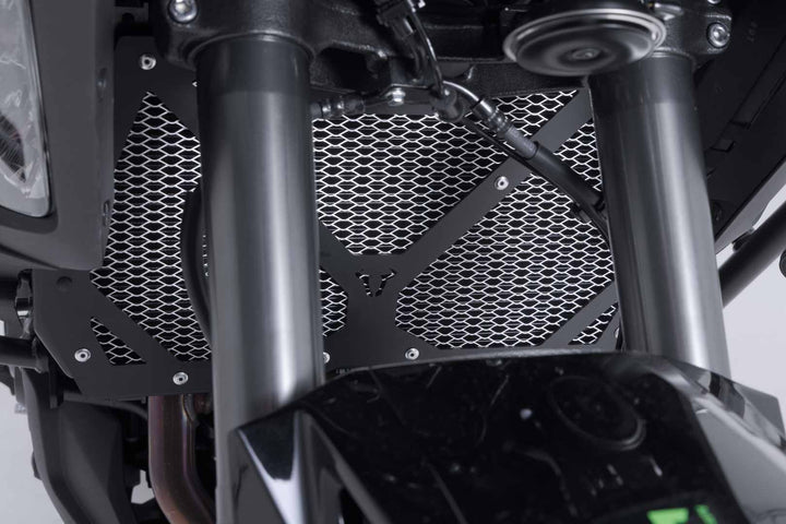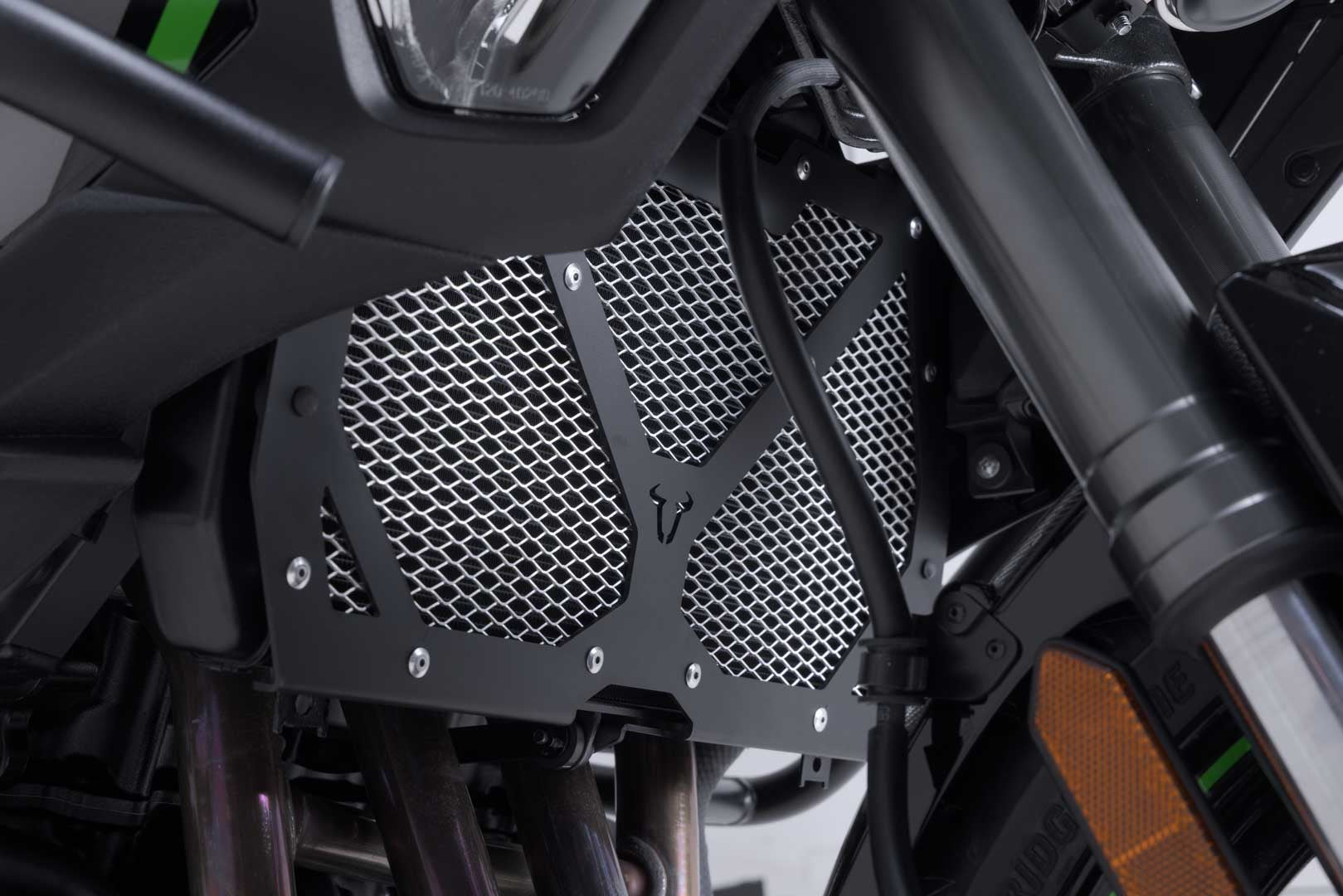 The protector, constructed to fit with the peg length of the motorcycle, offers an extra dose of protection from rock chips. The sturdy construction consists of an aluminium alloy frame and a grid that keeps out kicked-up rocks without blocking airflow to the radiator. The radiator guard can be quickly and easily mounted on original attachment points. All elements necessary for installation are included in delivery.
