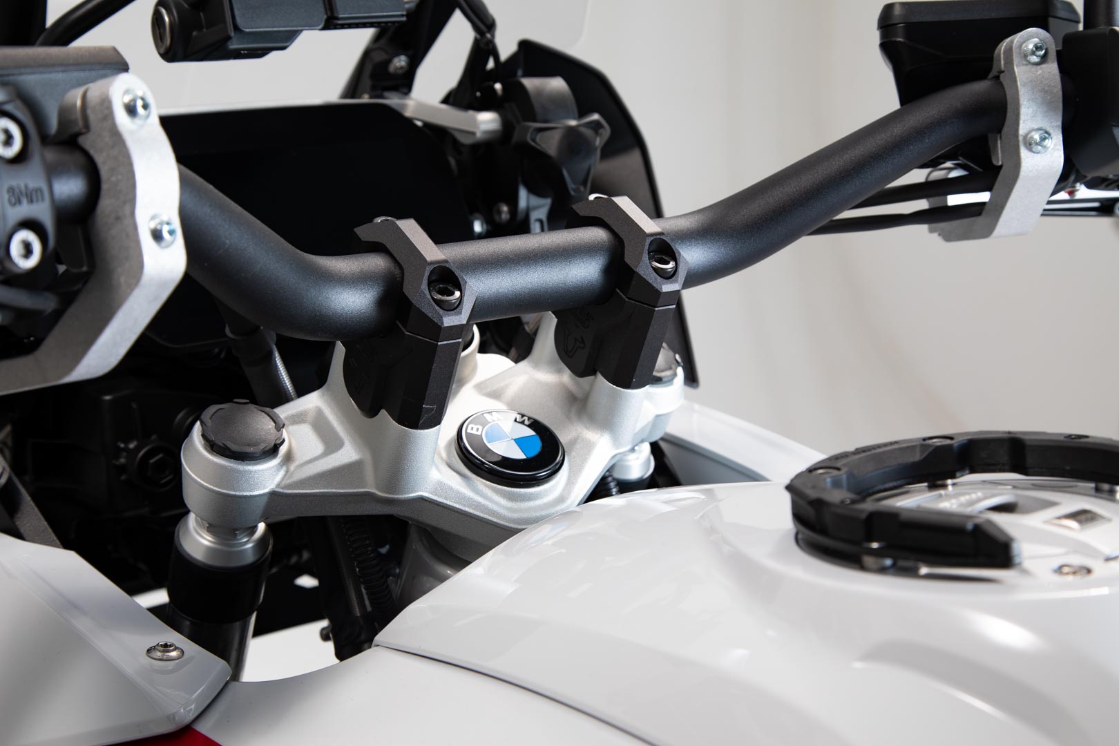 More driving comfort due to a changed seating position: These bar risers, specially adapted to the vehicle, made of sturdy, CNC-milled aluminium increase the handlebar height by 40 mm. Extending the Bowden cables and brake lines is not required.