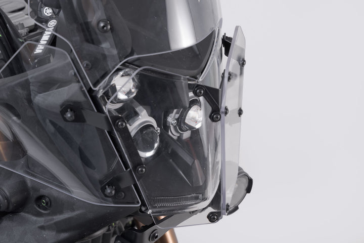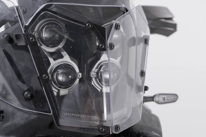 The headlight guard with transparent and extremely strong protective screen made of Makrolon keeps out stone chips and other objects. The support frame is made of laser cut and high strength steel.