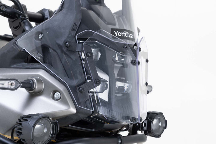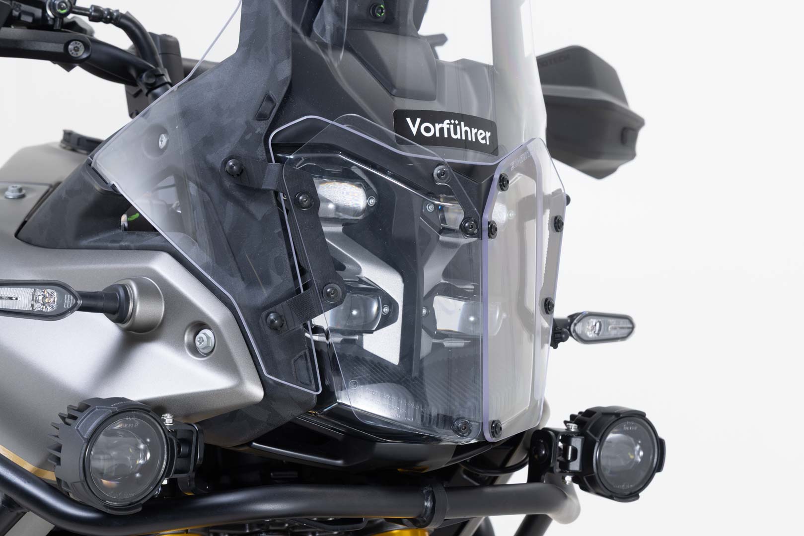 The headlight guard with transparent and extremely strong protective screen made of Makrolon keeps out stone chips and other objects. The support frame is made of laser cut and high strength steel.