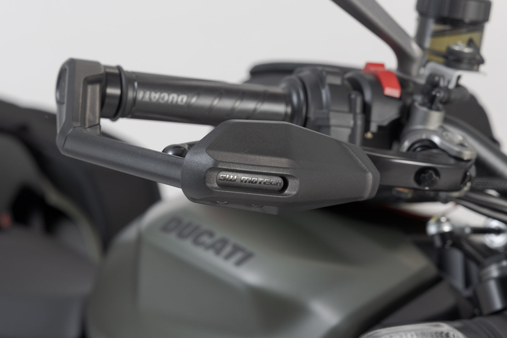 Together with the lever guards for the Ducati Streetfighter V2 & Triumph Daytona 660, these impact-resistant wind deflectors from SW-MOTECH offer additional protection for the handlebars. Their sporty design looks great on naked bikes and sports tourers. The wind protection is made of black plastic and provides extra protection in the event of falls and accidents. The lever guards can be easily mounted using the two screws provided.