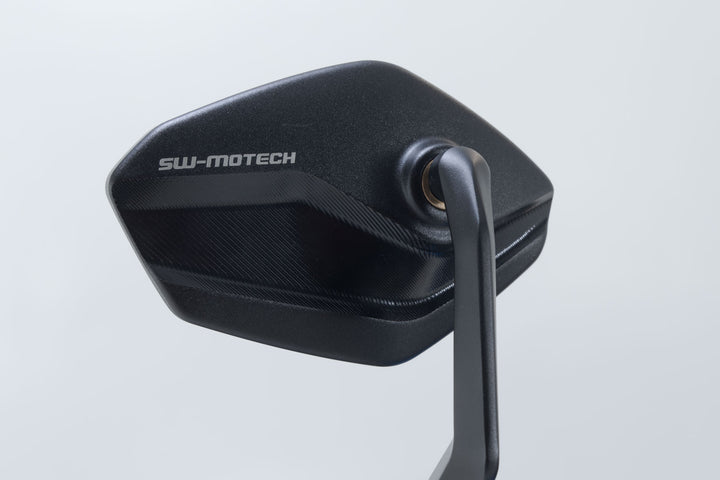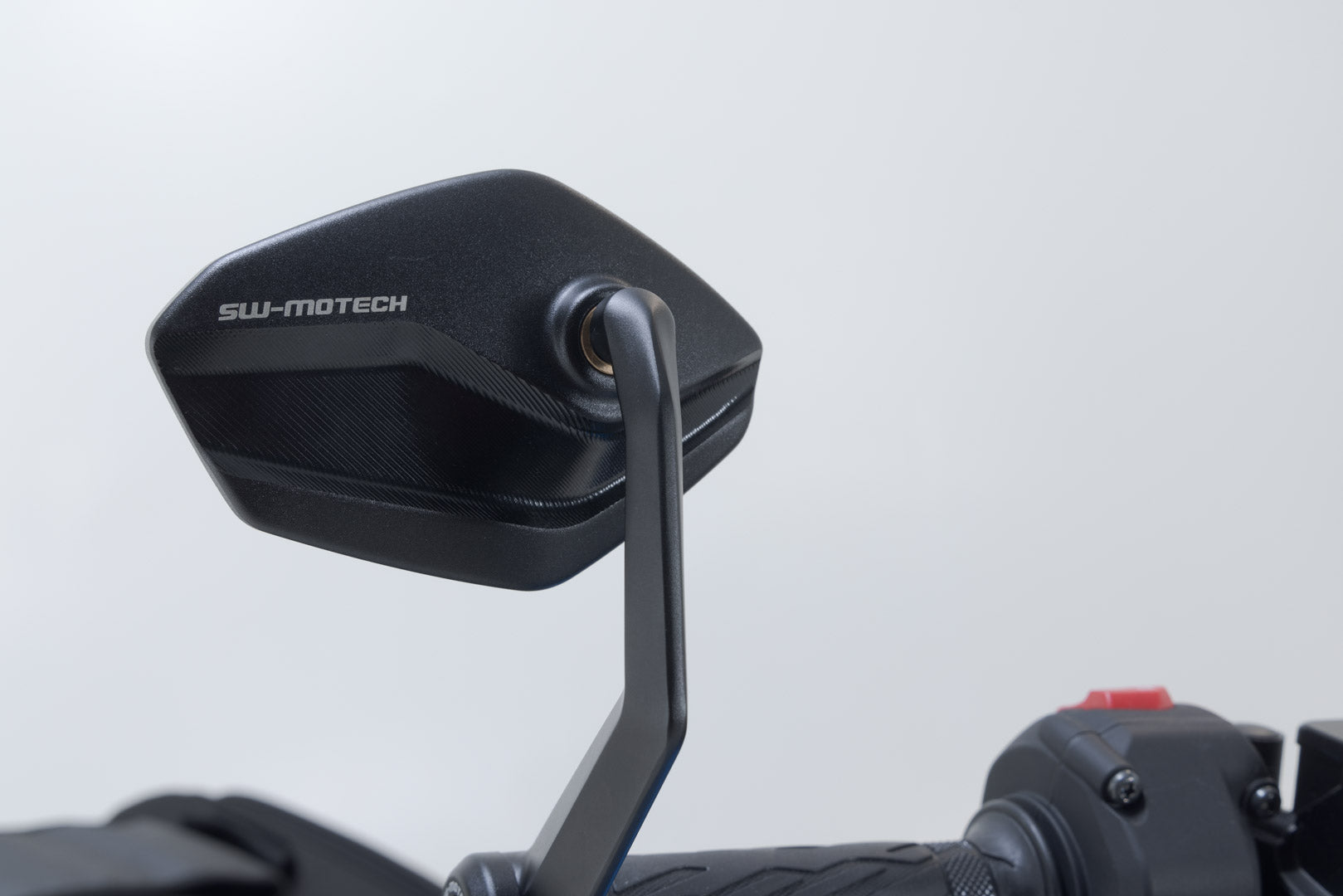 Make your Suzuki GSX-8S stand out with the handlebar end mirrors from SW-MOTECH. The mirrors are made from forged, milled and black anodized aluminum and feature engraved logo details. Thus, they add a robust yet elegant touch to your handlebars.