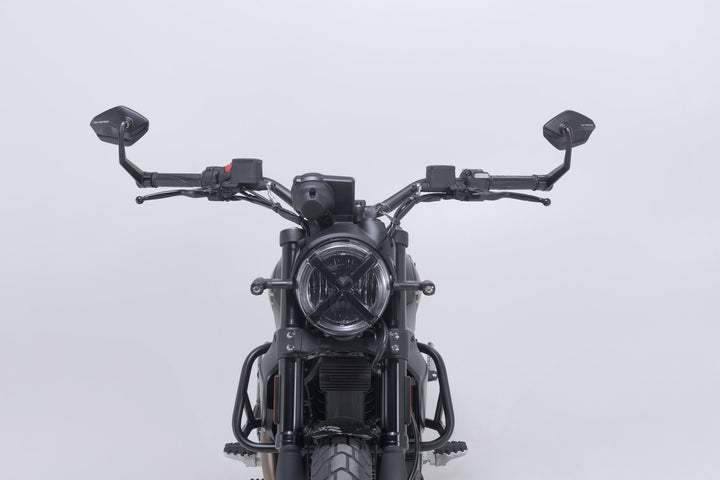 The aeordynamically designed wrap-around arm and the timeless, simple design of the mirrors blend perfectly on either modern naked sportbikes or modern retro-styled scramblers or café racers. The ball head behind the mirror housing enables precision and versatile adjustment of your field of view so that you always have a clear view of what is happening behind you. Together with the mounting parts included in the sets, they can be fitted to your motorcycle with a perfect fit and ensure a high-quality and harmonious appearance thanks to carefully selected and coordinated surfaces.