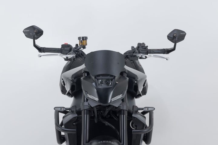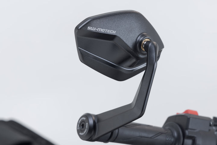 Make your Yamaha MT-09 stand out with the handlebar end mirrors from SW-MOTECH. The mirrors are made from forged, milled and black anodized aluminum and feature engraved logo details. Thus, they add a robust yet elegant touch to your handlebars.