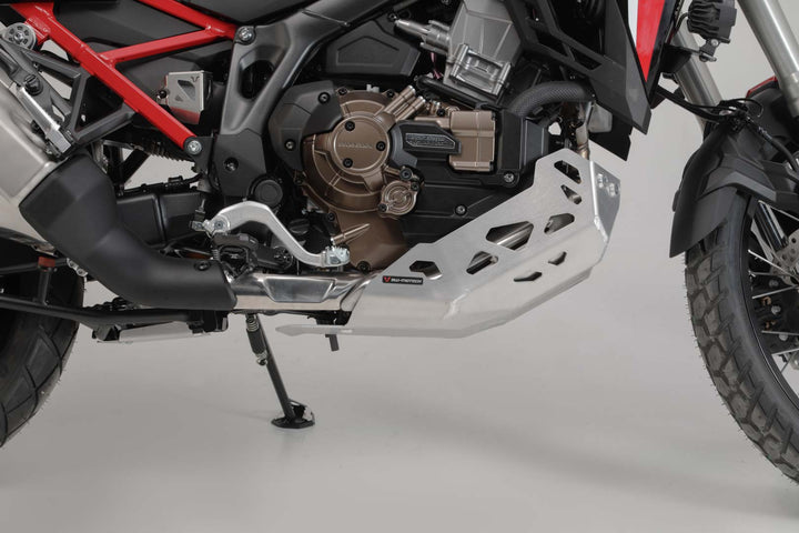 SW-MOTECH offers a durable engine guard made of 4 mm thick brushed aluminium sheet suitable for the HONDA Africa Twin CRF1100L and the CRF1100L Adventure Sports. It can protect the beams of the newly designed frame and the manifolds from damage caused by stone chips and bumps in the terrain.