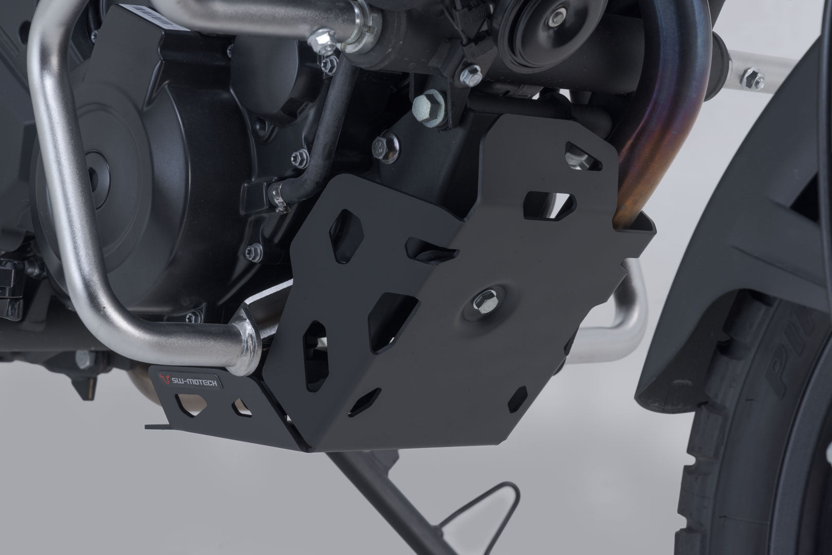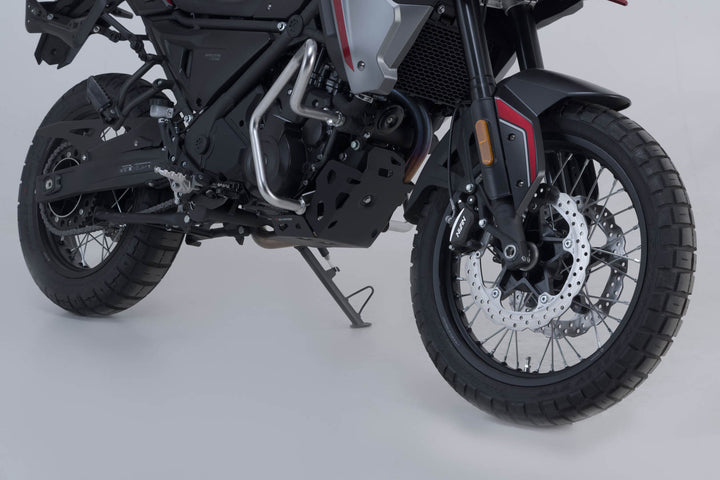 Additional protection against rocks and contact with the ground for the engine: the high-quality, aluminium alloy engine guard shows what it's capable of off the street, but provides extra safety and an individualized look on the streets, too. State-of-the-art production gives these bike-specific protectors a secure fit. The installation on frame mounting points lends additional stability and allows for easy installation.