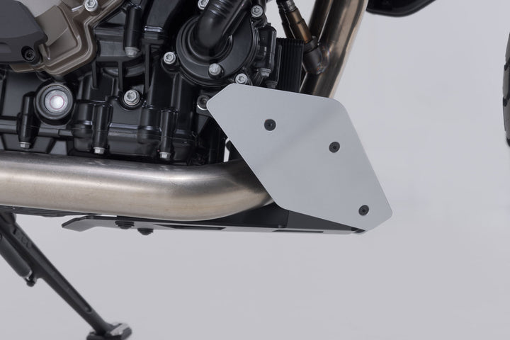 The SW-MOTECH front spoiler, which is tailored to the design of the bike, offers reliable protection against stone chips and unintentional contact with the ground. The powder coating on the surface is extremely durable and permanently protects against corrosion. Extremely sturdy underbody protection can be easily attached to original attachment points using the custom steel attachments provided, all without drilling or welding.