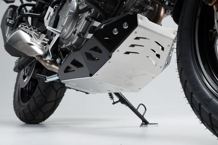 Additional protection against rocks and contact with the ground for the engine: the high-quality, aluminium alloy engine guard shows what it's capable of off the street, but provides extra safety and an individualized look on the streets, too. State-of-the-art production gives these bike-specific protectors a secure fit. The installation on frame mounting points lends additional stability and allows for easy installation.