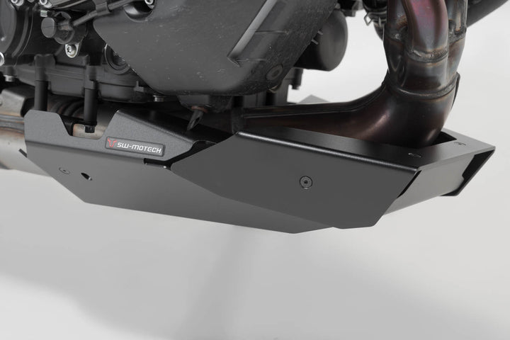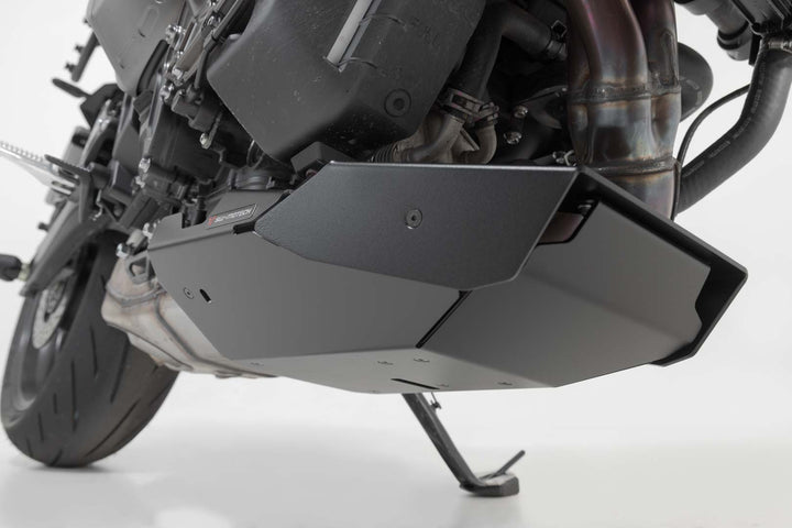 The SW-MOTECH front spoiler, which is tailored to the design of the bike, offers reliable protection against stone chips and unintentional contact with the ground. The powder coating on the surface is extremely durable and permanently protects against corrosion. Extremely sturdy underbody protection can be easily attached to original attachment points using the custom steel attachments provided, all without drilling or welding.