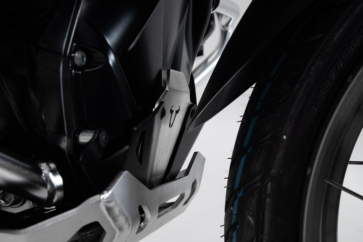 The engine guard extension protects the front area of the engine block from rock chips. Made from brushed and power-coated aluminium, the extension can be mounted on its own or in addition to an SW-MOTECH engine guard.
