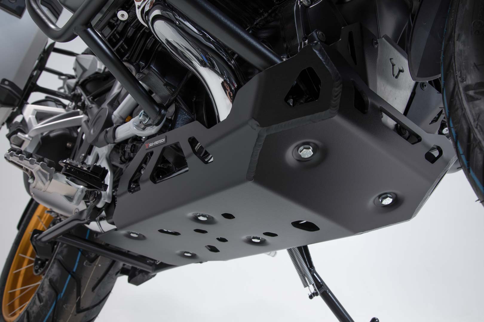 Additional protection against rocks and contact with the ground for the engine: the high-quality, aluminium alloy engine guard shows what it's capable of off the street, but provides extra safety and an individualized look on the streets, too. State-of-the-art production gives these bike-specific protectors a secure fit. The installation on frame mounting points lends additional stability and allows for easy installation.