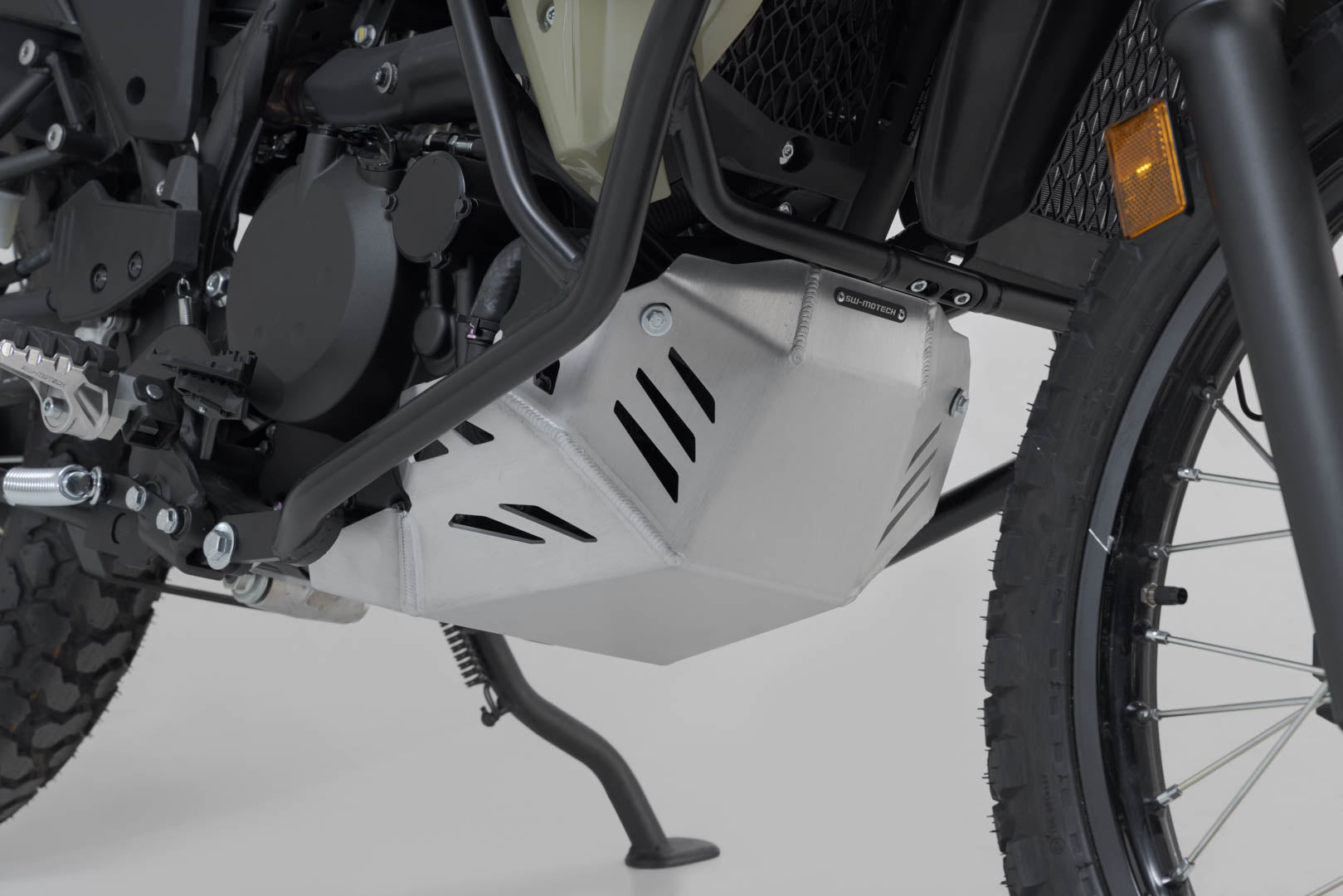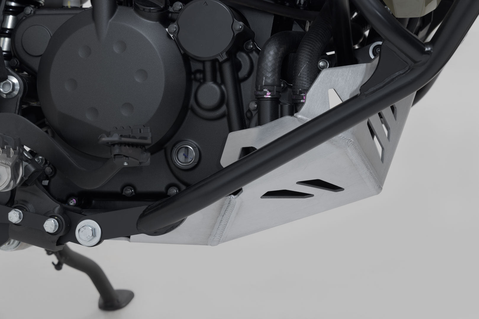 Additional protection against rocks and contact with the ground for the engine: the high-quality, aluminium alloy engine guard shows what it's capable of off the street, but provides extra safety and an individualized look on the streets, too. State-of-the-art production gives these bike-specific protectors a secure fit. The installation on frame mounting points lends additional stability and allows for easy installation.