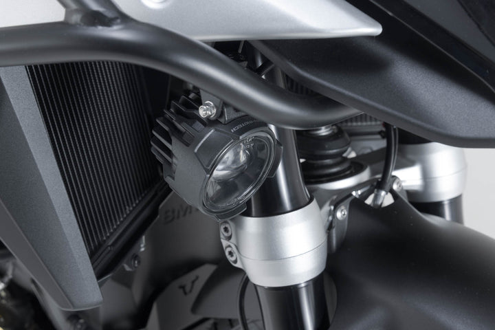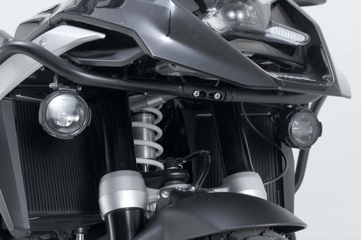 These bike-specific mounts provide optimal positioning of the EVO lights, because they are developed exclusively for each motorcycle model. The sturdy elements made of powder-coated steel are screwed on to existing attachment points. They guarantee secure hold for the EVO lights, even when riding off-road. Please refer to the mounting instructions to determine if headlamps can be mounted standing, hanging and/or sideways on your motorcycle model.