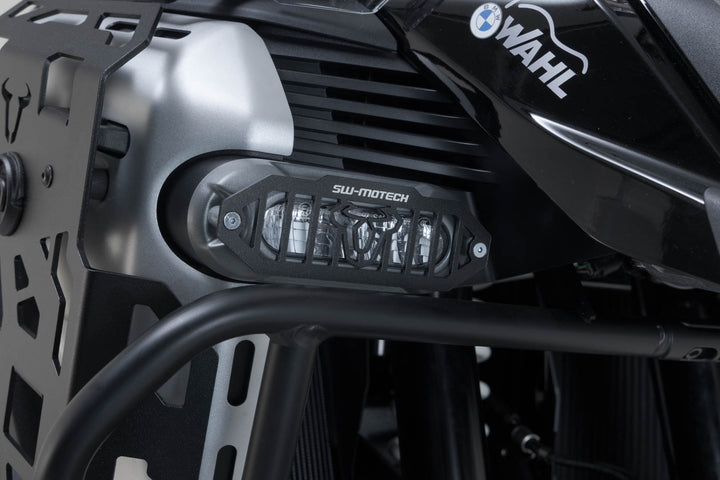 The steel protective grille protects the additional headlights of the BMW R 1300 GS Adventure from gravel and foreign objects. The headlight guard can be mounted on the original bracket in just a few steps.