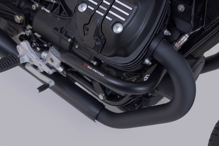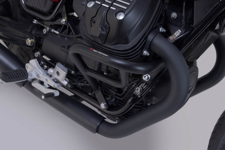Suitable for the Moto Guzzi V7/V9 models, the crash bars are made of robust 27 mm thick steel tube with weather- and corrosion-resistant powder coating in black. The surface finishing is carried out in a state-of-the-art facility in the SW-MOTECH plant in Brno in the Czech Republic.