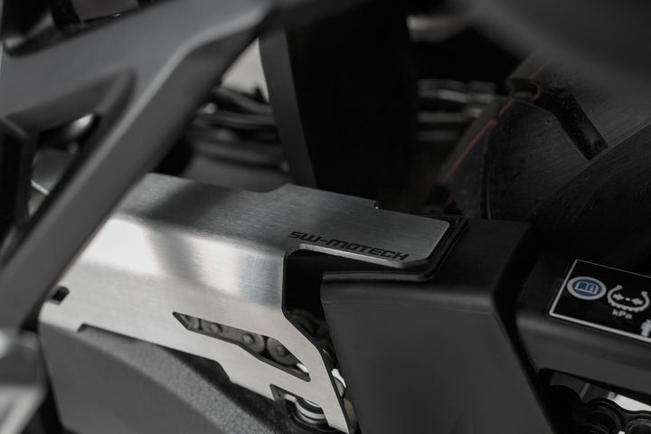 The protection set contains the following components suitable for the Honda Africa Twin CRF 1000L: Header pipe guard and Chain guard extension.