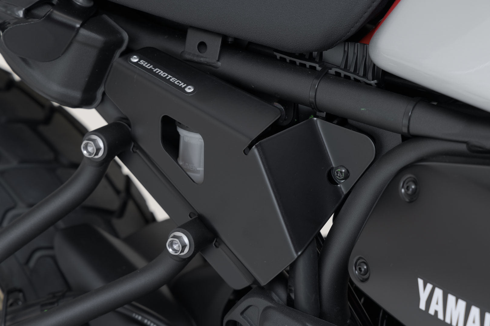 The compact brake reservoir guard protects the original brake reservoir from rock chips and simultaneously prevents unwanted removal of the cover. The protector can be installed on the motorcycle in a few simple steps.