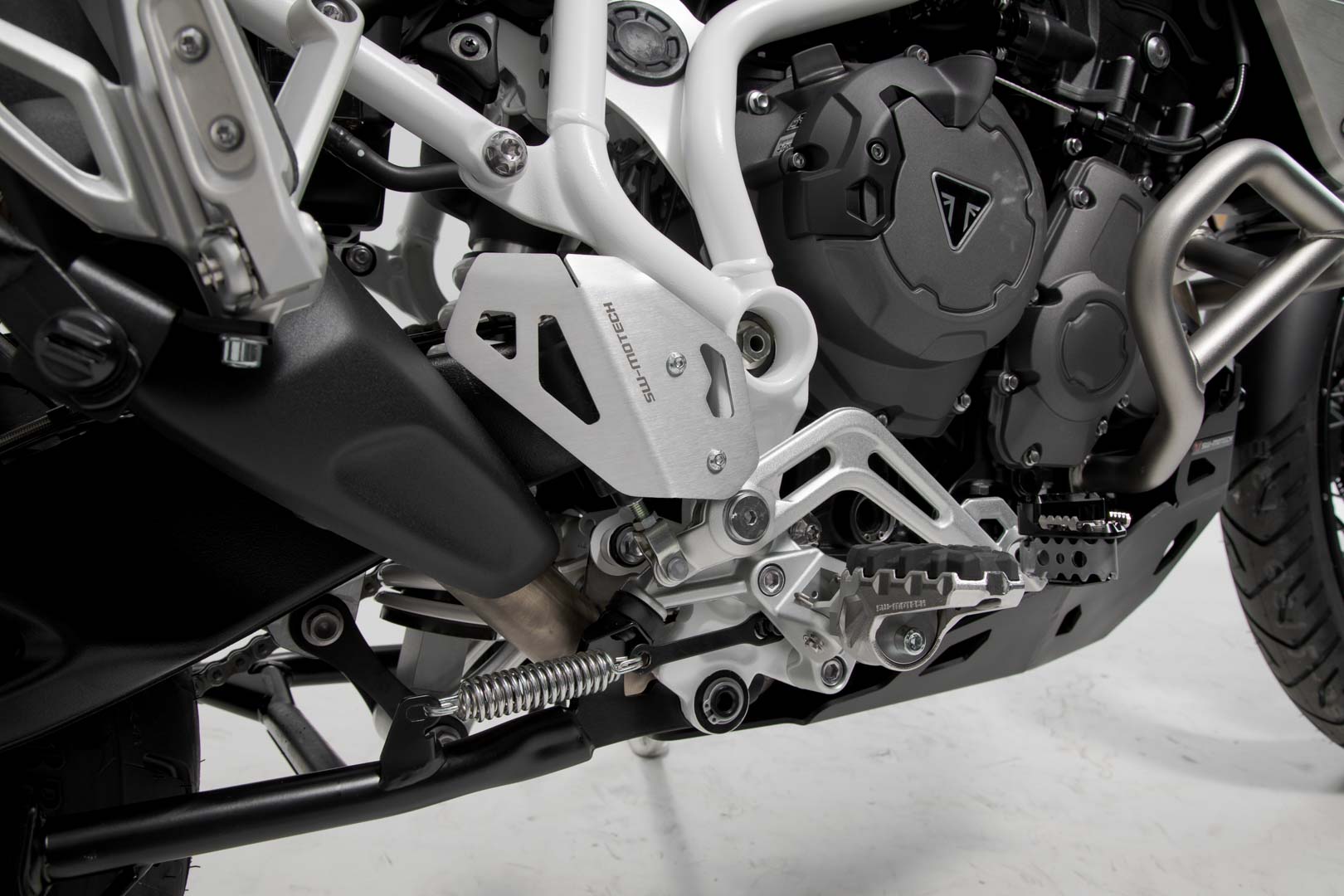 Well protected: this heel guard prevents touching the hot exhaust or chain and protects against movements of the swing arm.