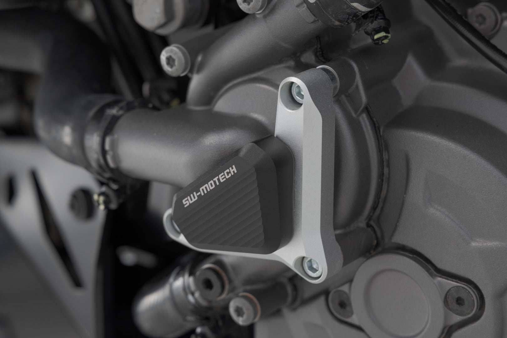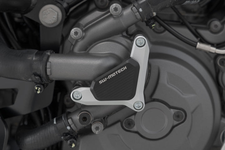 The protector designed to fit the look of the bike can protect the water pump from damage due to accidental ground contact. The water pump protection is made