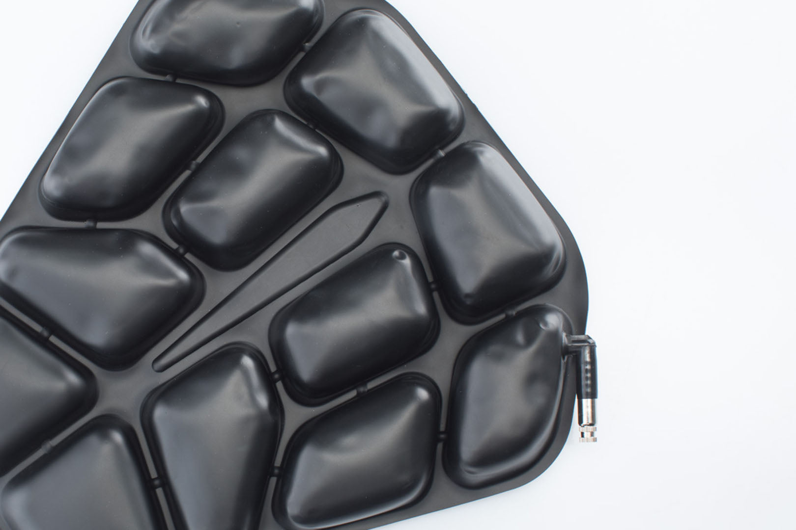 A non-slip underside and retaining straps guarantee secure positioning of the cushion. The bi-elastic, rugged artificial leather surface provides extra sitting comfort. The air volume can be adjusted via an integrated vent for more comfort or a more responsive feel on curvy roads.