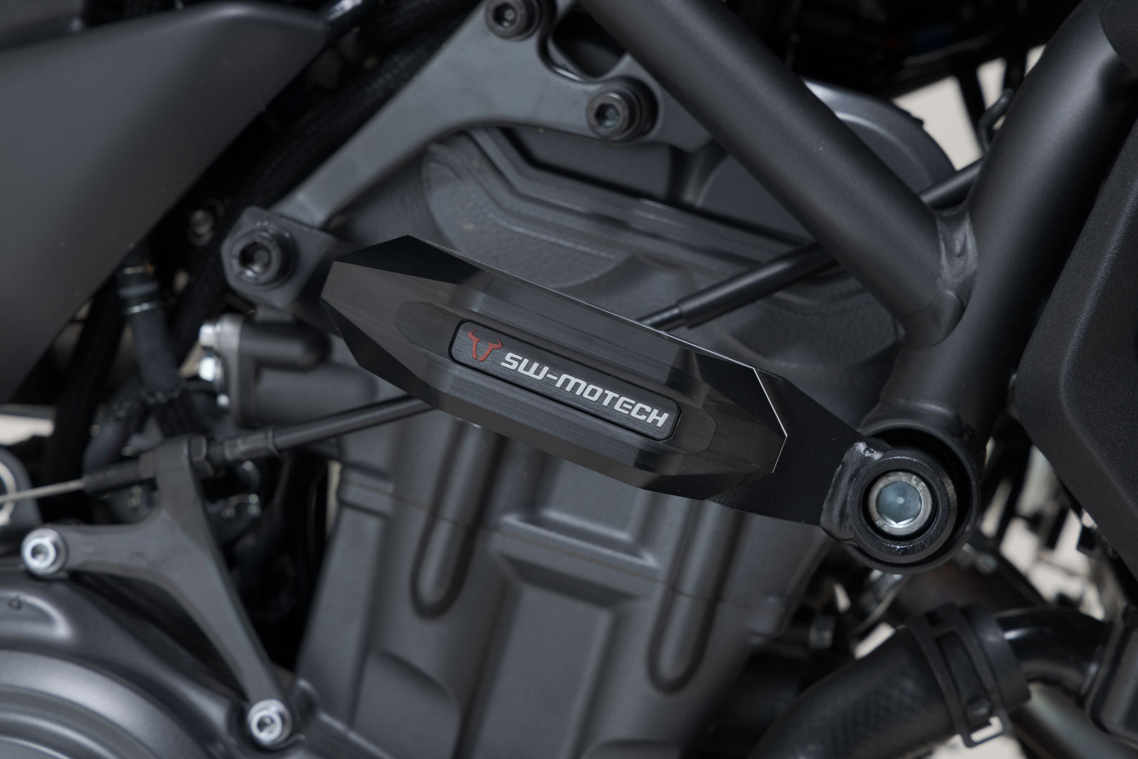 Frame crash pads provide additional protection in the event of a fall. The shape, surface and material ensure excellent gliding properties and reduce damage to your MT-07 / Tracer. The robust aluminium mounting bracket is easy to install, and the abrasion-resistant, CNC-milled slider pads are replaceable.