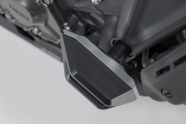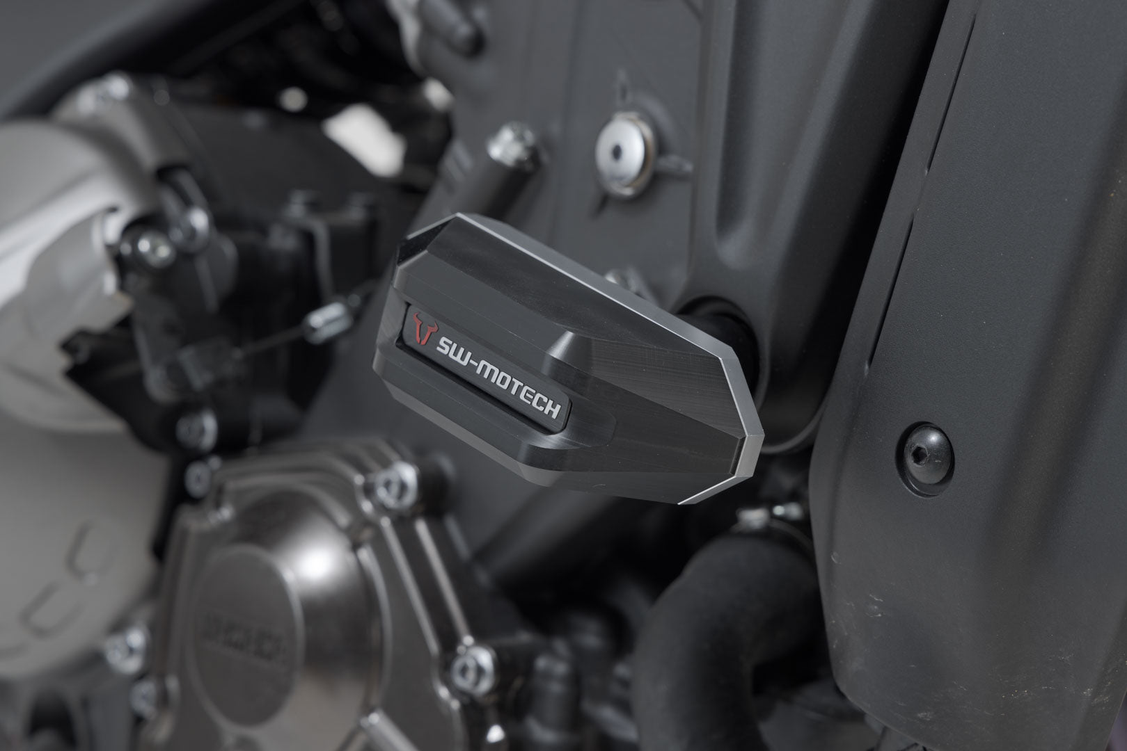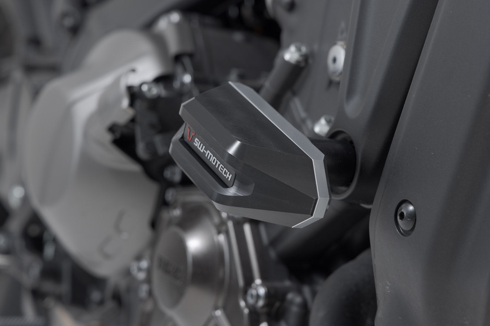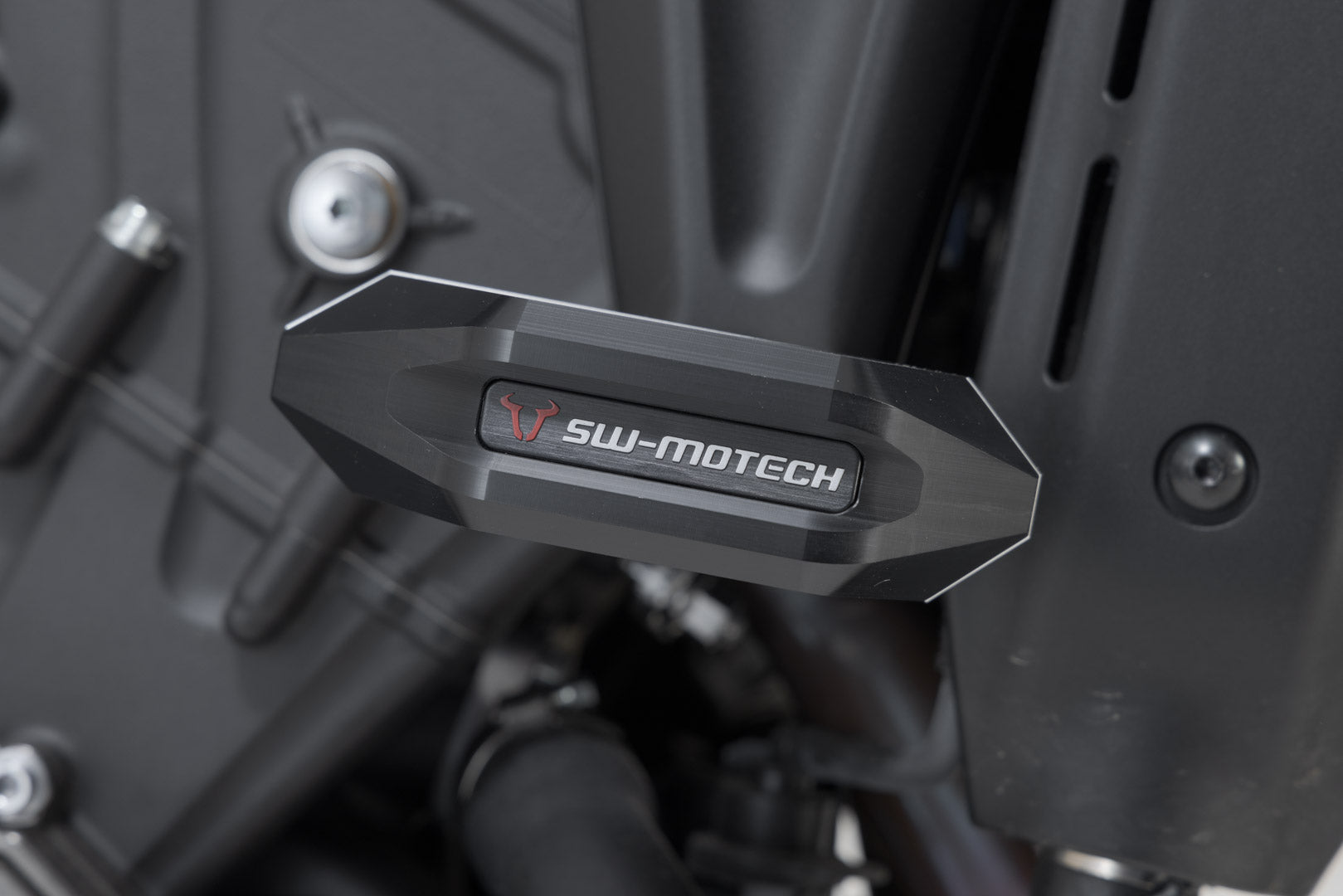 Frame crash pads provide additional protection in the event of a fall. The shape, surface and material of the pads provide excellent sliding properties to reduce damage to the motorcycle. The robust aluminium mounting bracket is easy to install, and the abrasion-resistant, CNC-milled slider pads are replaceable.