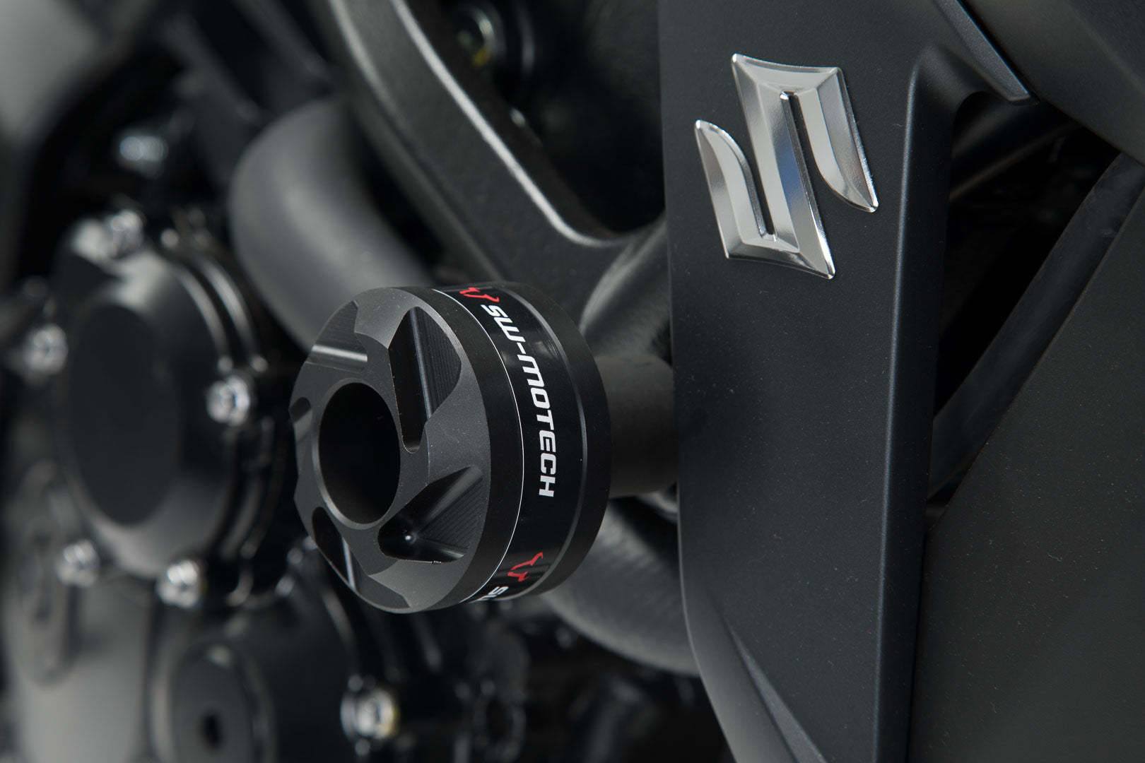 Frame crash pads provide additional protection in the event of a fall. The shape, surface and material of the pads provide excellent sliding properties to reduce damage to the motorcycle. The substructure can be easily mounted onto the frame's attachment points and, if necessary, the CNC-milled slider pads made of abrasion-resistant polyamide can be quickly replaced.
