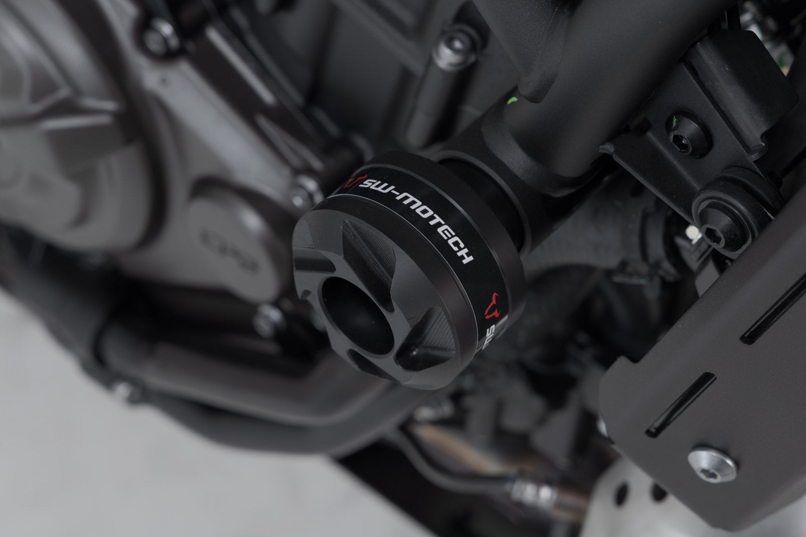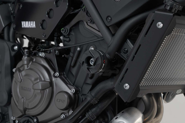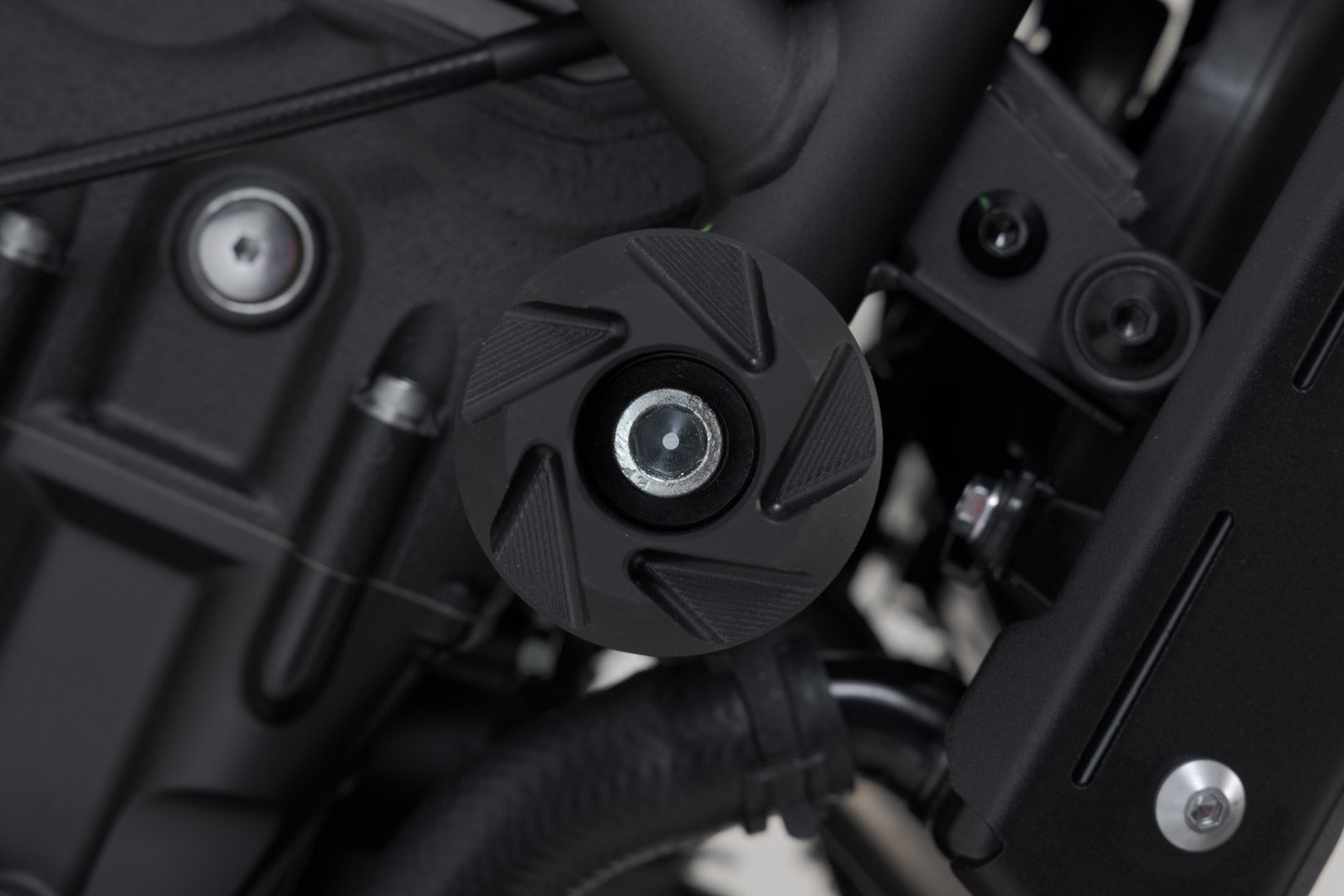 Frame sliders on the Yamaha XSR 700 provide additional protection in the event of a fall. The shape, surface and material of the pads provide excellent sliding properties to reduce damage to the motorcycle. The substructure can be easily mounted onto the frame's attachment points and, if necessary, the CNC-milled slider pads made of abrasion-resistant polyamide can be quickly replaced.