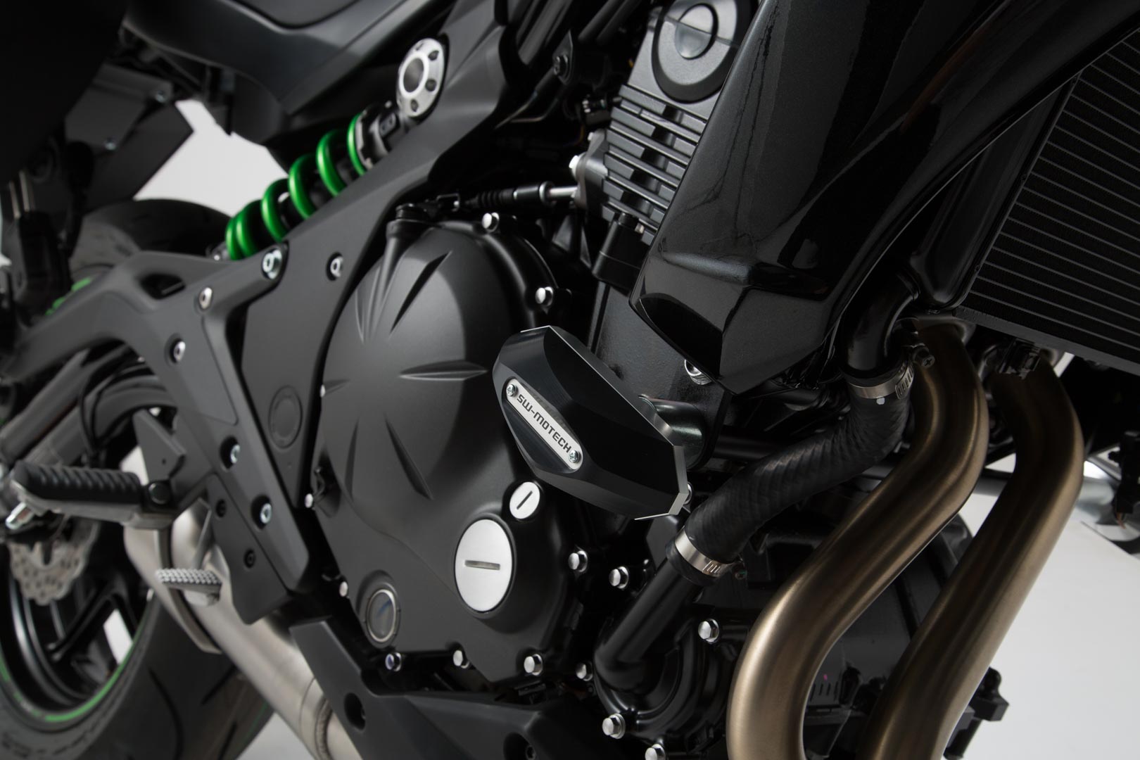 Frame crash pads provide additional protection in the event of a fall. The shape, surface and material of the pads provide excellent sliding properties to reduce damage to the motorcycle. The robust aluminium mounting bracket is easy to install, and the abrasion-resistant, CNC-milled slider pads are replaceable.