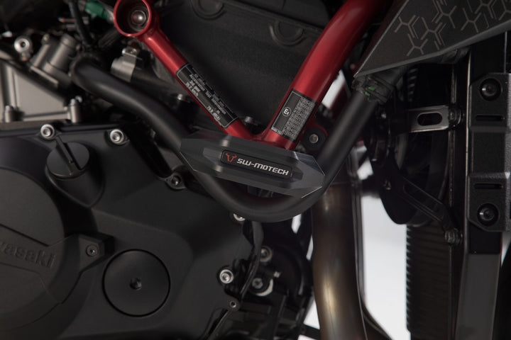 Frame crash pads provide additional protection in the event of a fall. The shape, surface and material of the pads provide excellent sliding properties to reduce damage to the motorcycle. The robust aluminium mounting bracket is easy to install, and the abrasion-resistant, CNC-milled slider pads are replaceable.