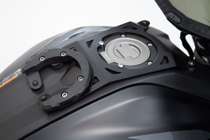 SW-MOTECH revolutionized motorcycle luggage with the introduction of the first tank ring with a convenient QUICK-LOCK mechanism. Made from glass-fiber-reinforced polyamide, the patented EVO tank ring employs a bike-specific design to provide complete stability and an optimal fit. EVO tank bags can be mounted or removed in one simple motion, yet the tank ring maintains a secure hold even during off-road riding.