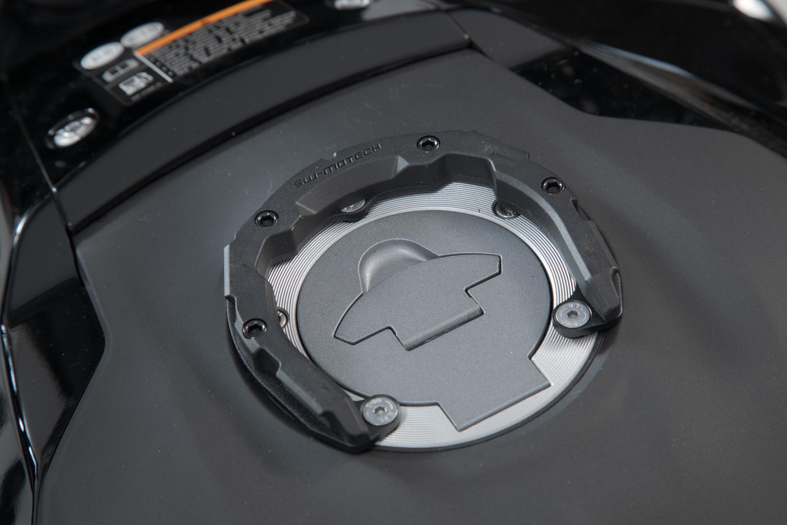 The mechanical locking mechanism secures the tank bag, and the magnets bring both parts of the ring together. The robust fibreglass reinforced plastic with its high-precision locking geometry is responsible for ensuring that the tank bag remains firmly in place in all situations.