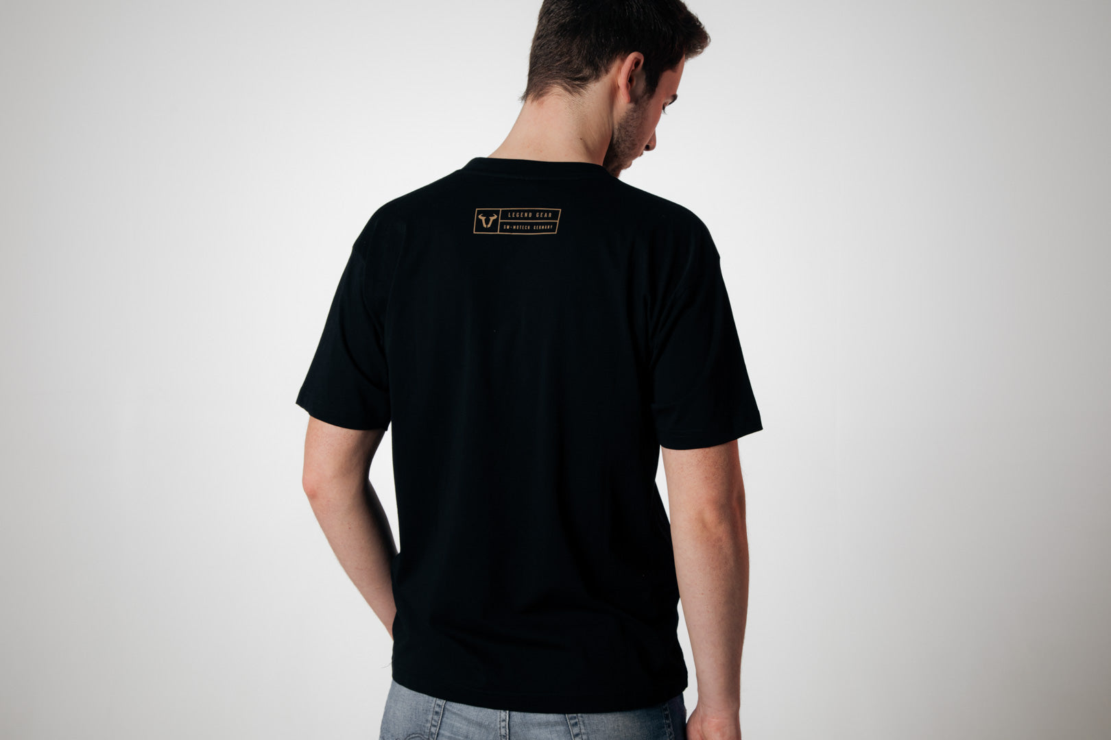 This black t-shirt features a cool used look print on the chest and a Legend Gear logo on the back. The top made from pure cotton is easy-care and offers maximum comfort. The crew neck and short sleeves make this a casual basic that goes well with anything.